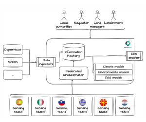 The platform provides a complete ecosystem, from edge sensing technologies deployed across different pilots and regions to the integration of global and regional climate models. This allows the delivery of value-added solutions and services that support better decision-making in land-use management.